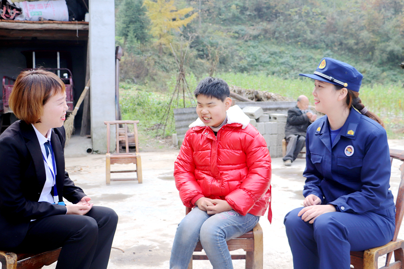 在特殊教育學(xué)校學(xué)習(xí)的大都是智力障礙、身患?xì)埣驳暮⒆?,平時(shí)很少接觸到有關(guān)消防方面的知識(shí),為了讓孩子們“零距離”了解消防,考慮到學(xué)生的特殊性,大隊(duì)消防宣傳員為師生們還精心準(zhǔn)備了消防安全課,播放了消防宣傳動(dòng)畫片,并用簡明易懂的語言生動(dòng)地講解了消防安全常識(shí),把消防安全的“種子”駐入孩子們心中。 最后,在特教學(xué)校校長的陪同下,助學(xué)聯(lián)合組帶著精心準(zhǔn)備的慰問品,前往過渡灣鎮(zhèn)鴻興園村深入“送教上門”的困難學(xué)生家中,走訪慰問,并耐心的與家人親切地交談,詳細(xì)地詢問了學(xué)生在家的生活、康復(fù)等情況,鼓勵(lì)家長繼續(xù)努力,積極面對(duì)生活中的各種困難,用樂觀克服坎坷。