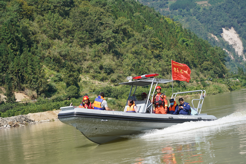 “9·5”瀘定6.8級地震發(fā)生后,臨近震中的石棉縣王崗坪鄉(xiāng)受災(zāi)嚴(yán)重,斷電、停水、通訊信號中斷……9月5日晚,雅安市消防救援支隊(duì)接到抗震救災(zāi)前線指揮部命令,一支27人的突前小組組建,打通了石棉縣新民鄉(xiāng)通往王崗坪鄉(xiāng)的“水上救援通道”。經(jīng)過各方消防支隊(duì)和各方力量的不懈努力,通往王崗坪鄉(xiāng)的道路終于被打通。