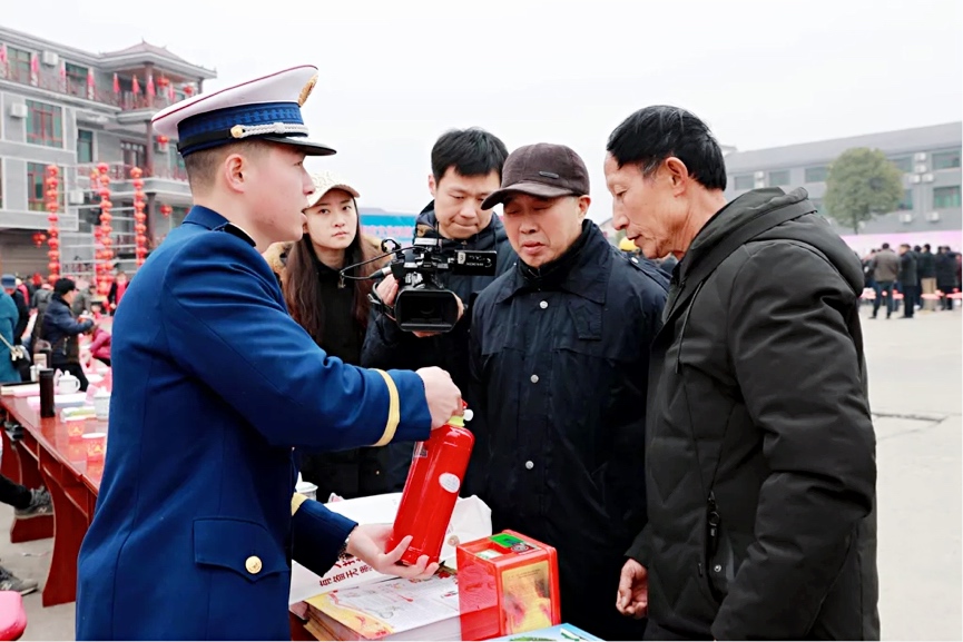 在現(xiàn)場,岳陽消防救援支隊在醒目位置擺放了精心制作的消防宣傳展板,宣傳人員精心準備了各類消防知識宣傳資料發(fā)放給過往村民,并積極向村民宣傳介紹消防法律法規(guī)、講解消防安全常識、發(fā)現(xiàn)火情應如何正確撥打“119”等知識。同時結合冬春火災防控工作耐心向現(xiàn)場村民提供咨詢答疑。針對農(nóng)村實際情況,宣傳人員還要求村民們加強對火源、火種的管理,灶前不堆放柴草、不亂拉電線、對陳舊老化和不合格的電線和電器要及時更換。