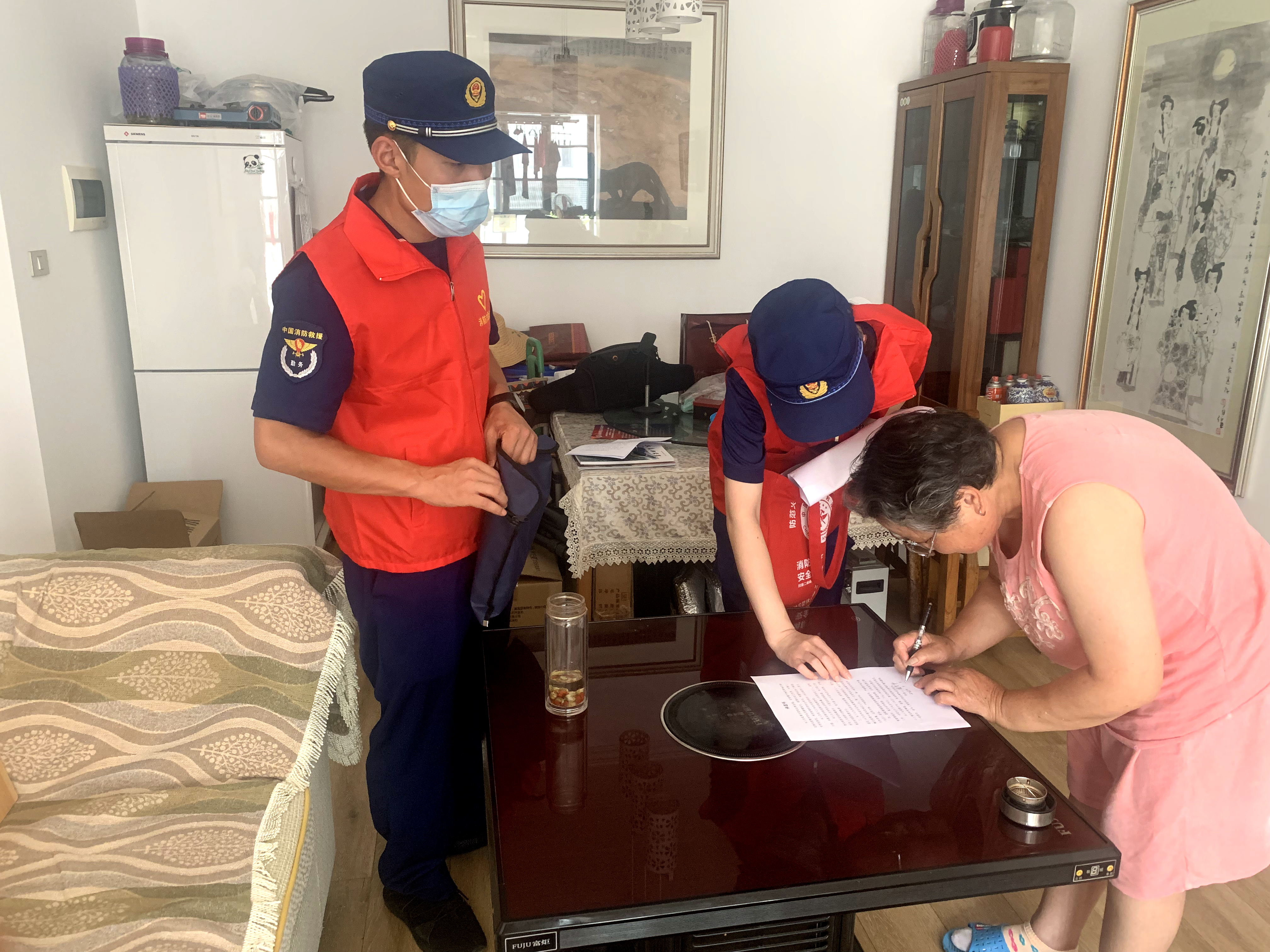 在投身社區(qū)、農(nóng)村疫情防控工作的同時,漢江消防同步開展“我為群眾辦實事”實踐活動,對居民樓電梯進行消殺、消防通道進行清理,并借用志愿服務(wù)之機,向周邊商戶和農(nóng)村居民開展消防安全知識宣傳,向他們宣講用火用電安全、電動車充電注意事項、火災(zāi)初期撲救方法、家庭自救技巧等知識。