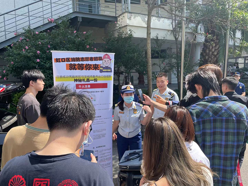 9月23日,虹口區(qū)消防救援支隊(duì)到上海外國(guó)語(yǔ)大學(xué)舉辦消防志愿者招募進(jìn)校園活動(dòng),吸引大批師生參加。