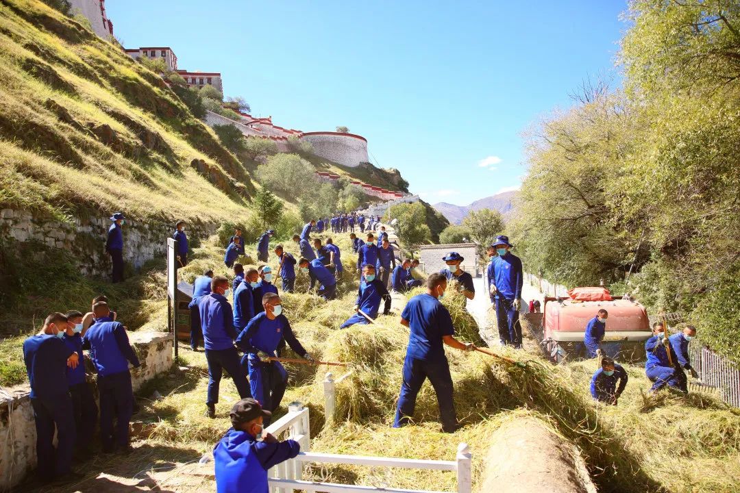 布達(dá)拉宮依紅山而建,而紅山上叢生的雜草在嚴(yán)寒干燥的冬季帶來了諸多火災(zāi)隱患,特別是每年10月份以后,山體風(fēng)干物燥、雜草叢生,如不及時(shí)清理,遇到煙頭等致災(zāi)因素極易發(fā)生火災(zāi),為有效防范冬季火災(zāi)險(xiǎn)情,全力筑牢布達(dá)拉宮冬季防火“安全網(wǎng)”,從2005年至今的16年來,拉薩市消防救援支隊(duì)(以下簡(jiǎn)稱“支隊(duì)”)每年都會(huì)出動(dòng)指戰(zhàn)員義務(wù)為布達(dá)拉宮這座世界文化遺產(chǎn)清理雜草,消除火災(zāi)隱患。
