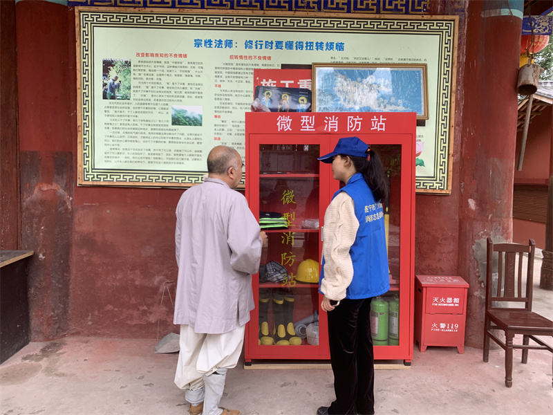 為傳播消防安全理念,普及消防安全知識(shí),進(jìn)一步提升宗教場(chǎng)所消防安全系數(shù),切實(shí)加強(qiáng)宗教場(chǎng)所消防安全管理工作,10月11日,遂寧市消防救援支隊(duì)經(jīng)開(kāi)大隊(duì)組織志愿者走進(jìn)轄區(qū)宗教場(chǎng)所開(kāi)展消防宣傳。
