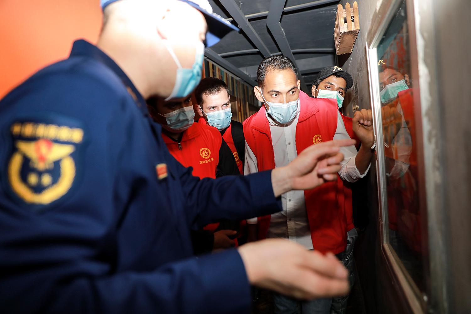 3月21日,來自也門、馬里、敘利亞、尼泊爾等國家的10余名國際消防志愿者代表組成的“小聯(lián)合國”服務分隊在義烏市消防救援支隊消防監(jiān)督人員帶領下,走進轄區(qū)的餐館、賓館、網吧等場所開展消防體驗執(zhí)法,“找茬”消防安全隱患,共同守護社區(qū)安全。