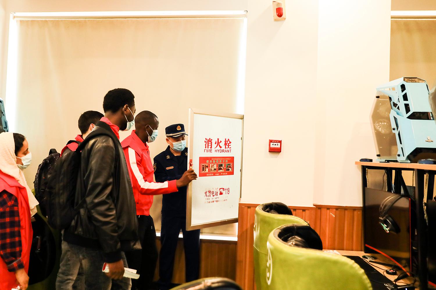 在杰拉網咖,不同膚色的志愿者統(tǒng)一著紅色的馬甲,正在仔細檢查滅火器、消火栓、疏散通道是否符合要求。來自敘利亞的莫海德2018年來義烏經商,從事進出口貿易。目前正在工商職業(yè)技術學院學習中文,是國際消防志愿者服務隊中的活躍分子。他用中文說,“通過跟班學習,能提升消防知識技能。后期,會把學到的知識分享給身邊的朋友,使大家共同關注消防安全?!?/p>