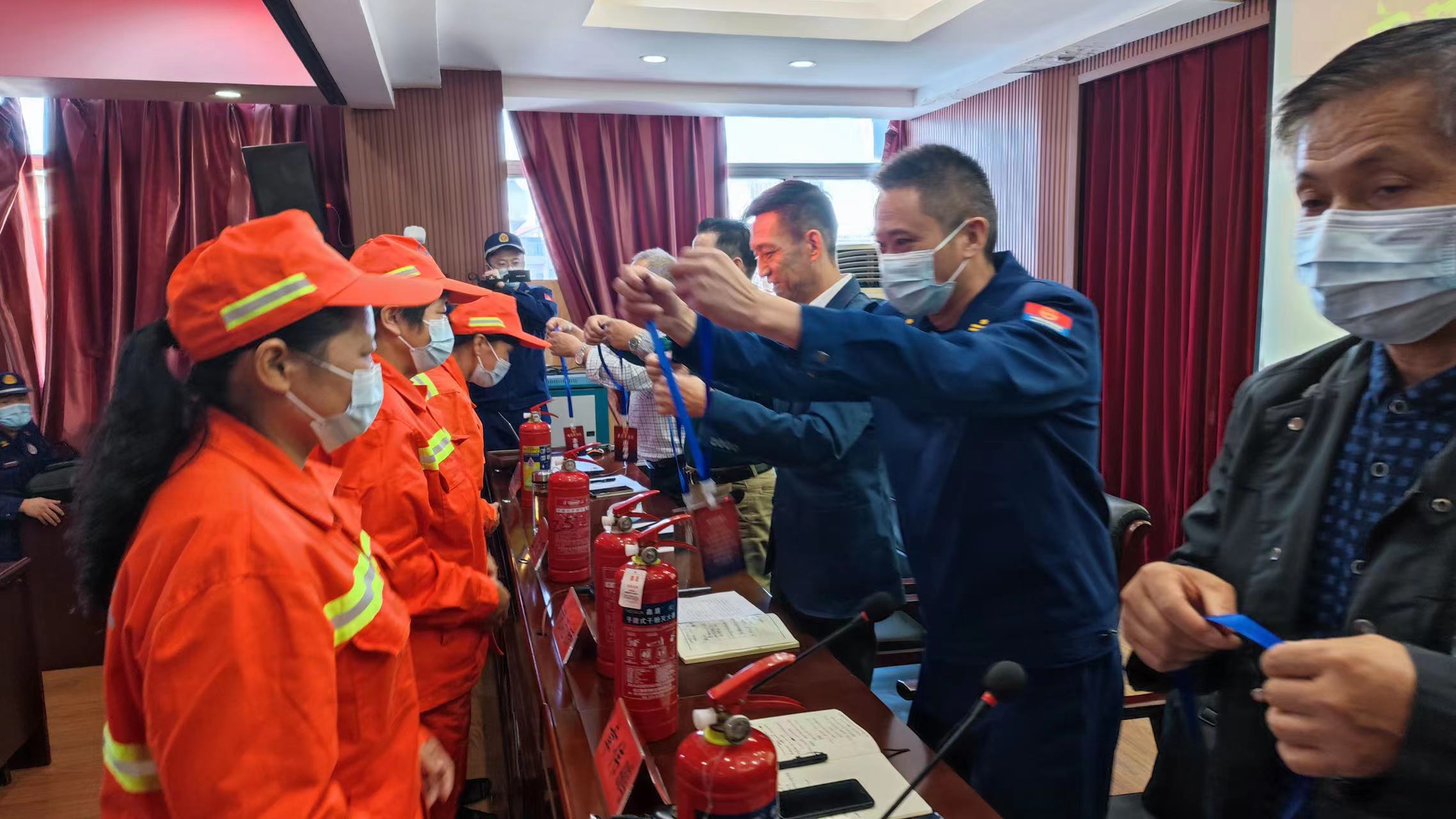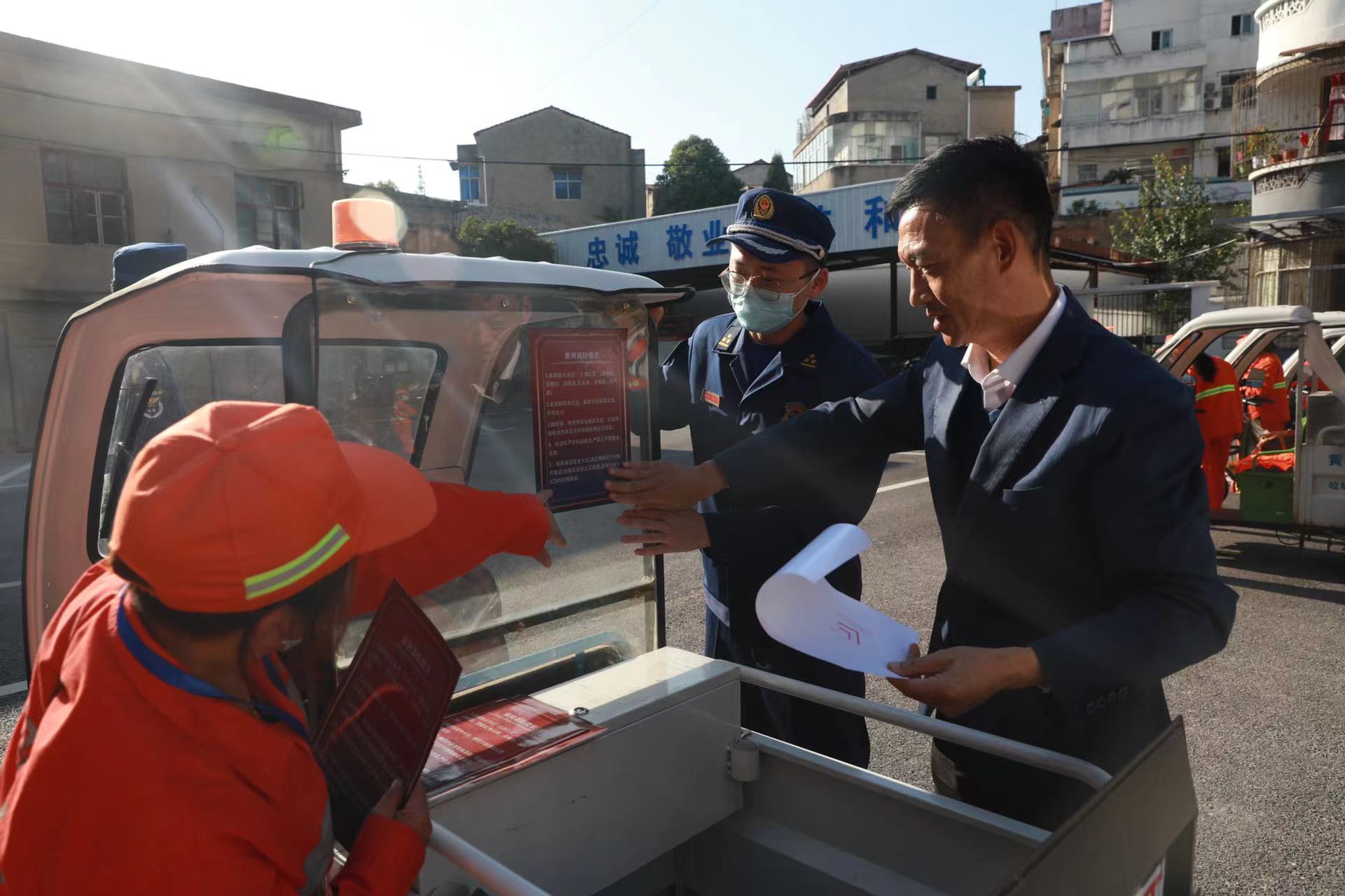成立儀式上,黃岡市消防救援支隊副支隊長為環(huán)衛(wèi)消防志愿服務隊授予了隊旗,為一線職工代表佩戴了消防志愿者胸牌、發(fā)放了隨車滅火器,并向現(xiàn)場消防志愿者做了動員講話,感謝他們?nèi)粘9ぷ髦械男燎诟冻觯M恳幻驹阜贞牫蓡T要當好“隱患搜集員”“消防宣傳員”“火災監(jiān)控員”“平安守護員”,為全市消防工作貢獻自身力量。隨后,支隊宣傳員組織參會人員注冊了全民消防學習平臺,觀看了消防安全警示教育片,培訓了干粉滅火器的使用方法,并將印有消防安全常識的宣傳海報張貼在各自保潔作業(yè)車的顯著位置。