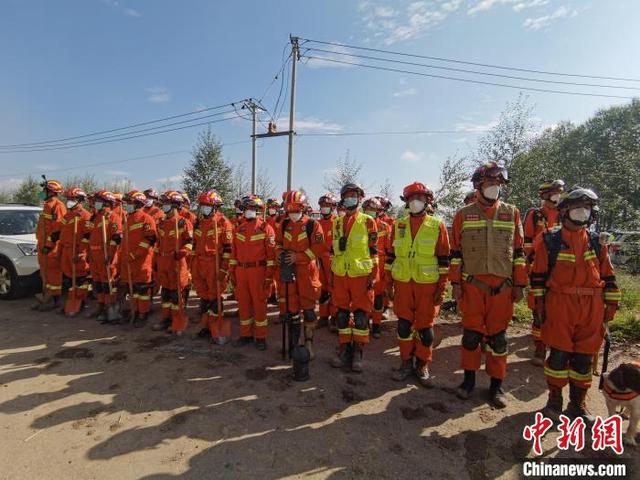 圖為消防救援人員集合完畢,準備開展救援?!∏嗪O拦﹫D