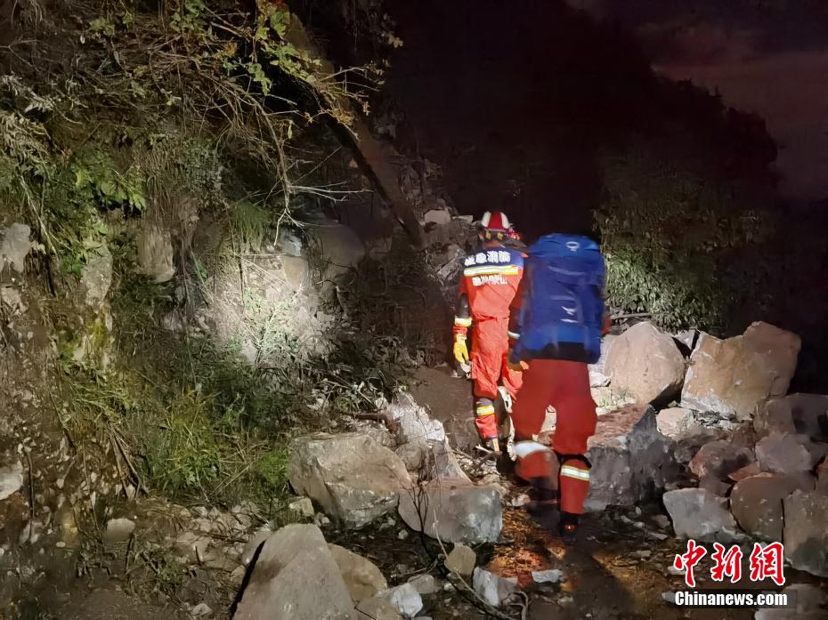 圖為樂山消防前突分隊(duì)前往瀘定磨西鎮(zhèn)磨杠嶺村開展搜尋排查。 胡駿 攝