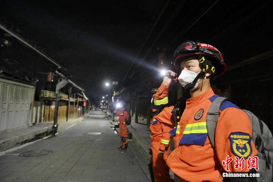 圖為成都消防救援支隊(duì)在瀘定縣德威鎮(zhèn)對(duì)居民房屋開展排查,協(xié)助轉(zhuǎn)移部分群眾。 四川消防供圖