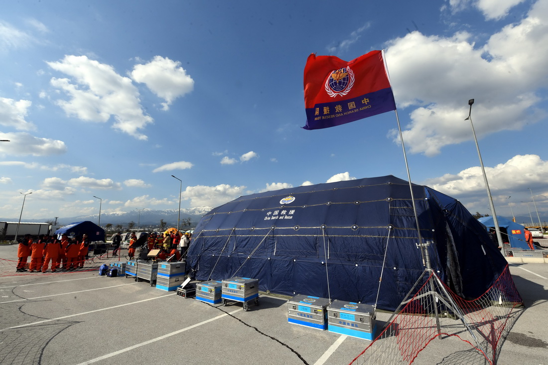 中國(guó)救援隊(duì)在土耳其地震重災(zāi)區(qū)哈塔伊省安塔基亞市的哈塔伊體育館外設(shè)立營(yíng)地,搭建了指揮、通信、醫(yī)療、庫房、住宿等設(shè)施,建立了救援行動(dòng)營(yíng)區(qū)。據(jù)中國(guó)救援隊(duì)最新消息,截至當(dāng)?shù)貢r(shí)間12日,中國(guó)救援隊(duì)在安塔基亞市已救出6名幸存者。新華社記者沙達(dá)提攝