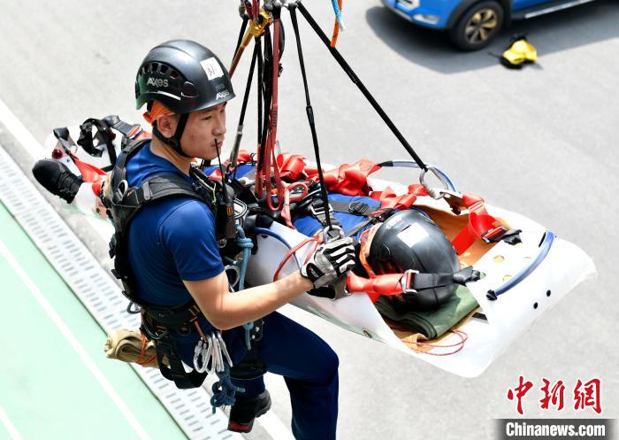 圖為消防員在參加繩索救援技術(shù)培訓(xùn)。王金秋攝