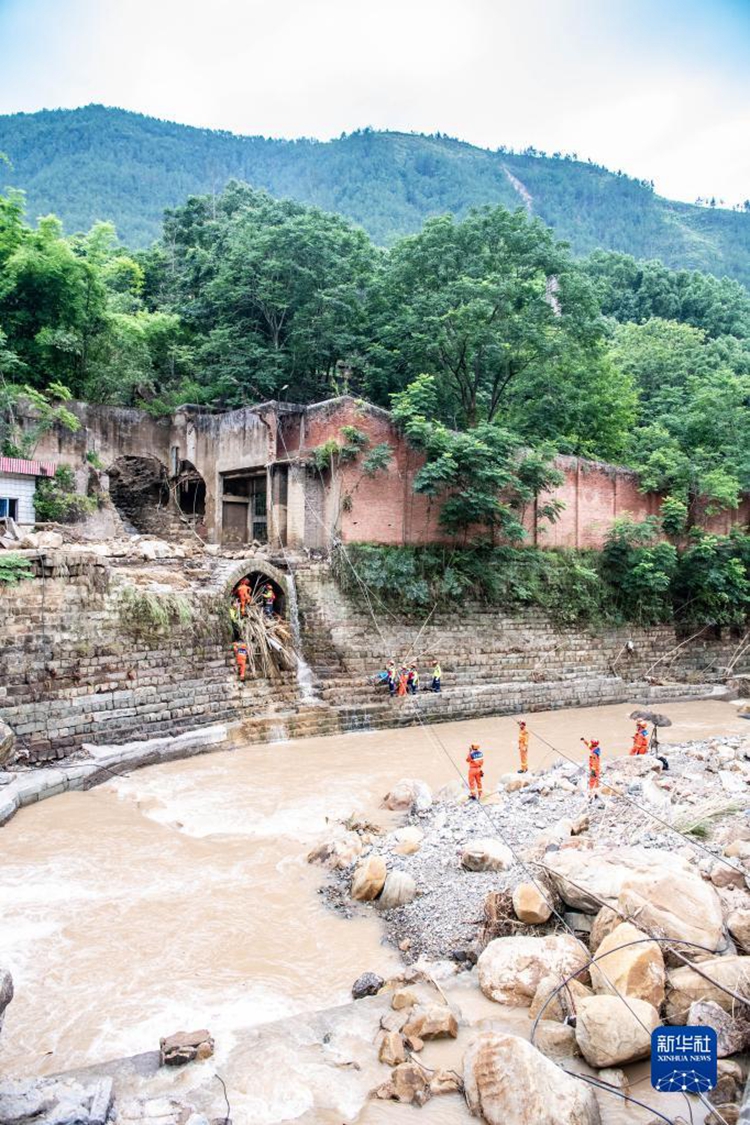 7月6日,在重慶市萬州區(qū)長灘鎮(zhèn)林場村,搜救人員在開展搜救。