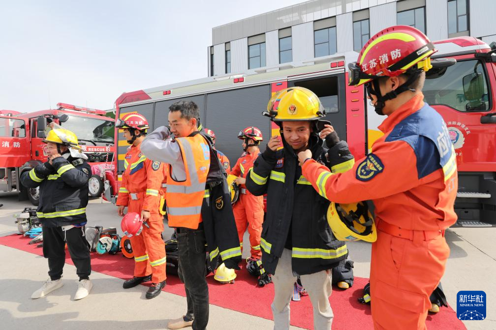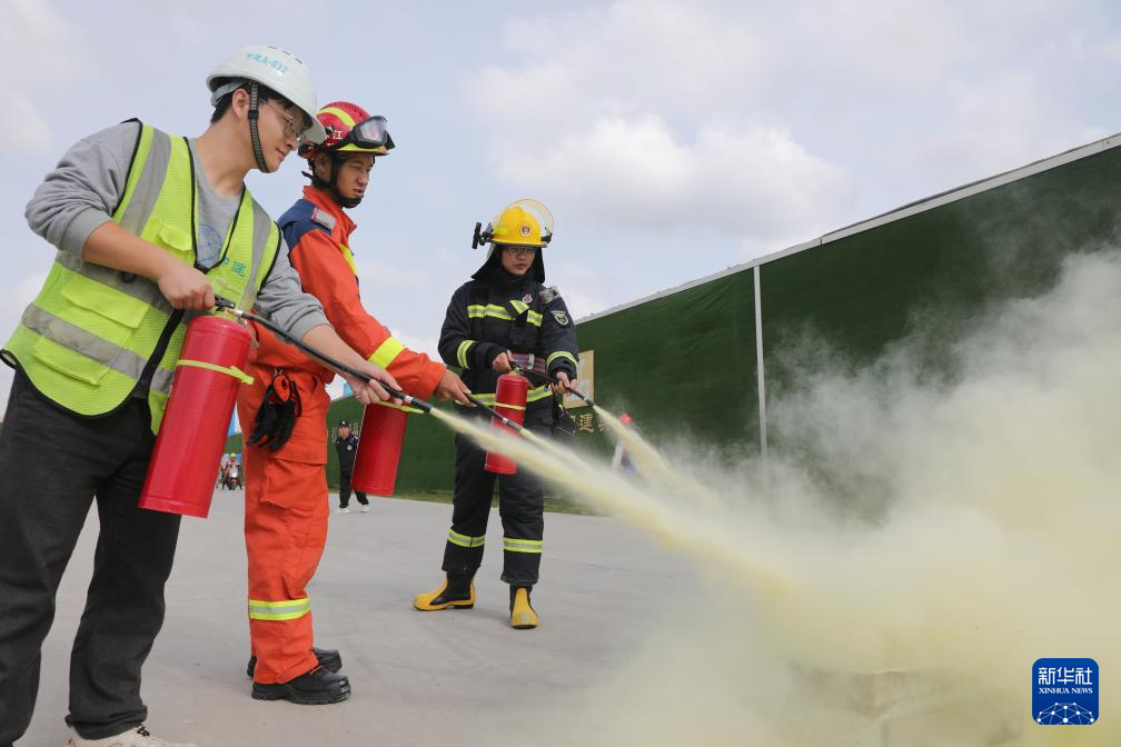 11月9日,在中建三局蘇州吳江一處建設(shè)工地,江蘇蘇州吳江區(qū)松陵消防專職救援隊為工人和周邊社區(qū)居民進(jìn)行消防安全培訓(xùn)。