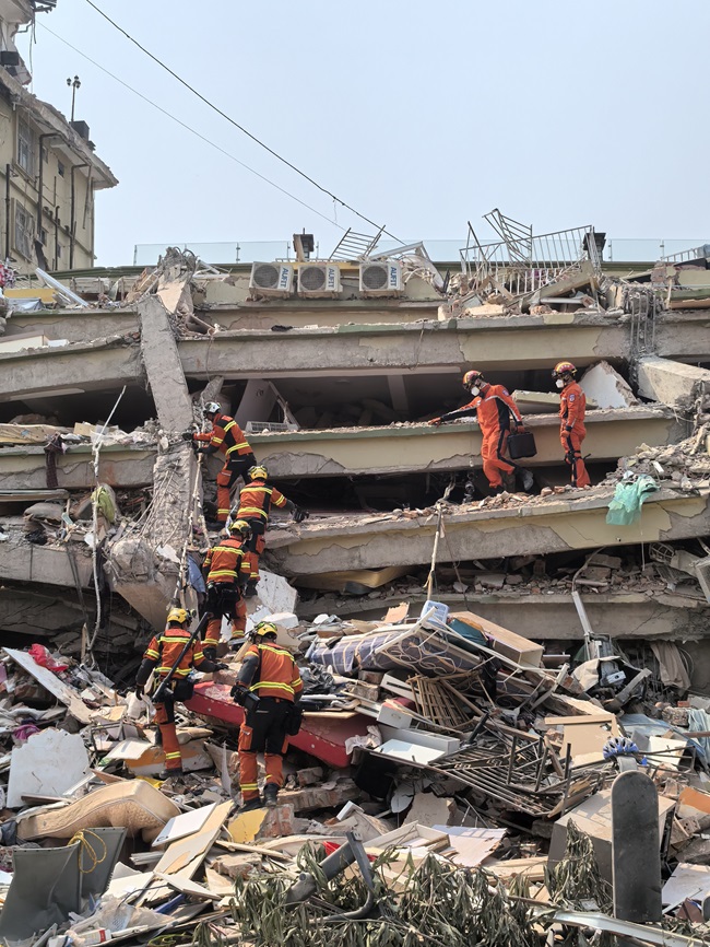 緬甸當(dāng)?shù)貢r(shí)間4月1日,中國(guó)救援隊(duì)聯(lián)合中國(guó)香港特區(qū)救援隊(duì)深入曼德勒受災(zāi)最嚴(yán)重的天空公寓救援點(diǎn)開展聯(lián)合搜救。這次聯(lián)合搜救,一共出動(dòng)24人,攜帶蛇眼內(nèi)窺鏡、生命探測(cè)儀、全視攝像頭和無(wú)人機(jī)等裝備,對(duì)天空公寓救援點(diǎn)重點(diǎn)部位進(jìn)行深入搜救。在2年前,2023年土耳其地震國(guó)際救援中,中國(guó)救援隊(duì)就同中國(guó)香港特區(qū)救援隊(duì)密切合作,共同開展了一系列成功救援。據(jù)悉,應(yīng)急管理部牽頭建立了中國(guó)救援隊(duì)伍在緬救援工作機(jī)制,統(tǒng)籌協(xié)調(diào)中國(guó)救援隊(duì)伍在緬甸曼德勒省開展救援工作。