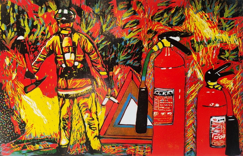 滅火英雄之有事?lián)艽?19 木刻 60 x 45 cm 王科偉 2019年