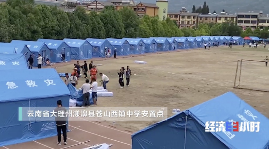 漾濞縣扶貧辦主任趙志輝介紹說,雖然此次地震中,倒塌的房屋并不算多,但有大量房屋已經嚴重開裂、損毀,已經不具備居住條件。當?shù)卣呀浽诳h城緊急啟動了5個集中避難安置點,安置受災群眾。