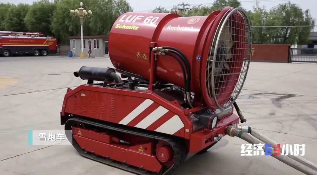 這款雪炮車最大的特點,就是裝載了一個碩大的炮筒,“炮筒”內(nèi)有360個噴嘴,噴嘴噴出霧化水汽后,后面的“風(fēng)輪”用強(qiáng)勁的風(fēng)力將其吹出,最遠(yuǎn)射程達(dá)60米,每小時排煙量達(dá)9萬立方米。