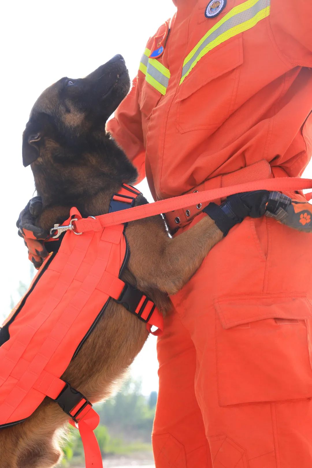 這樣的訓(xùn)練每天都在進(jìn)行。從清晨開始,火球般的太陽炙烤著大地 ,樹木被烤著耷拉著頭,搜救犬在樹蔭下,吐著可愛的舌頭。