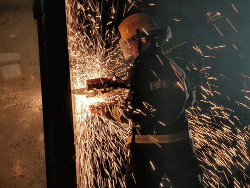 王龍宇在滅火救援中常常擔(dān)任水槍手,深入火場(chǎng)內(nèi)部撲滅火災(zāi),面對(duì)急難險(xiǎn)重的救援任務(wù)他從不畏縮。