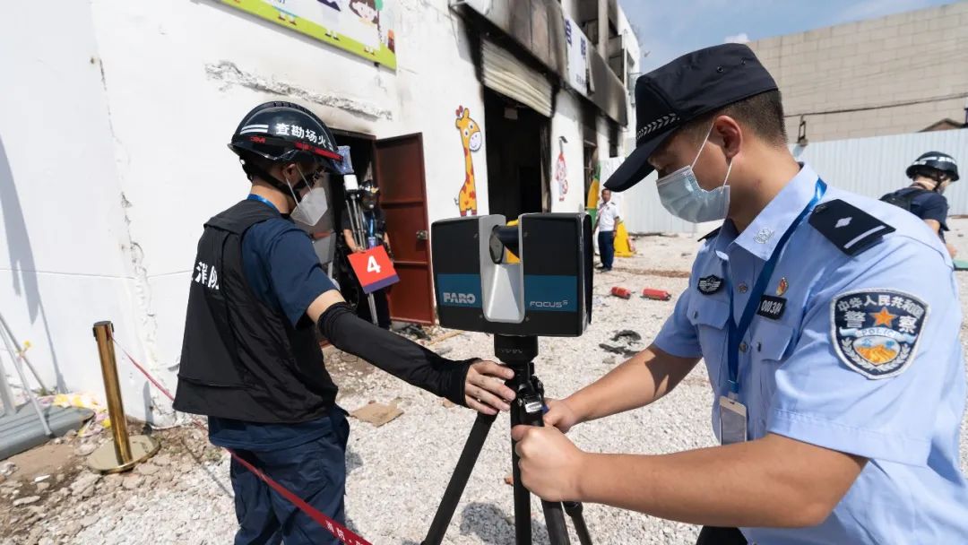 工欲善其事,必先利其器。對火災(zāi)調(diào)查來說,新型調(diào)查設(shè)備與技術(shù)的應(yīng)用至關(guān)重要。本次演練比武聯(lián)合應(yīng)用了火災(zāi)現(xiàn)場勘查車、無人機(jī)圖形工作站、統(tǒng)型防火器具、傳統(tǒng)火調(diào)器材、三維立體掃描儀、高空全景照相、衛(wèi)星遙感航拍、微量物證勘查、詢問測謊系統(tǒng)、圖像視偵系統(tǒng)、人口信息系統(tǒng)等高精尖裝備。
