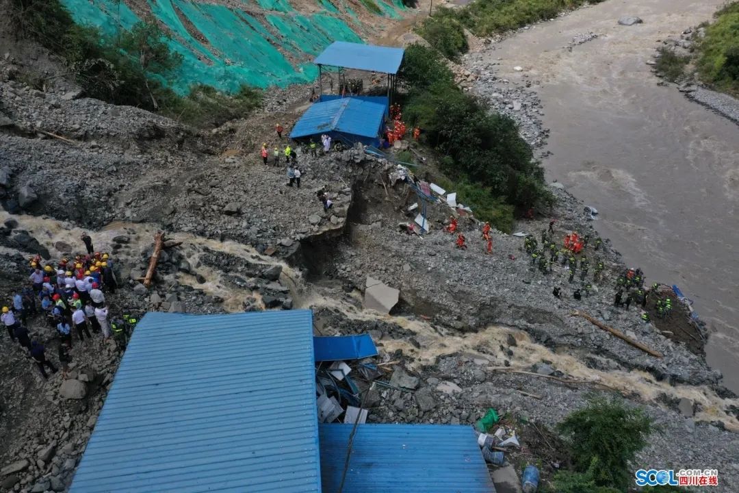 目前,受災(zāi)現(xiàn)場(chǎng)一處板房被沖毀一段,河面水勢(shì)洶涌,救援隊(duì)伍正利用生命探測(cè)儀、搜救犬等救援裝備開(kāi)展搜索和救援作業(yè)。