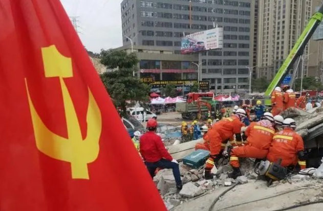 黨旗在應(yīng)急救援戰(zhàn)場(chǎng)高高飄揚(yáng)
