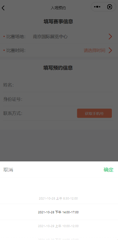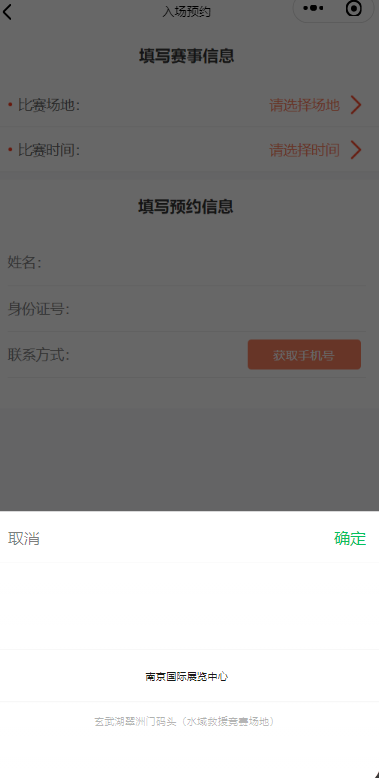 選擇觀賽場(chǎng)地和相應(yīng)的觀賽時(shí)間,填寫相關(guān)預(yù)約信息。