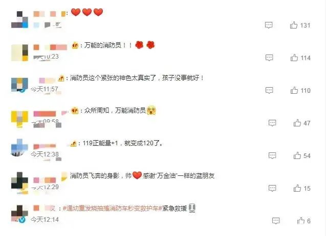 網(wǎng)友:“消防車不止會奔赴火場,還能秒變救護(hù)車!”“萬能的消防員”“感謝‘萬金油’一樣的藍(lán)朋友。”