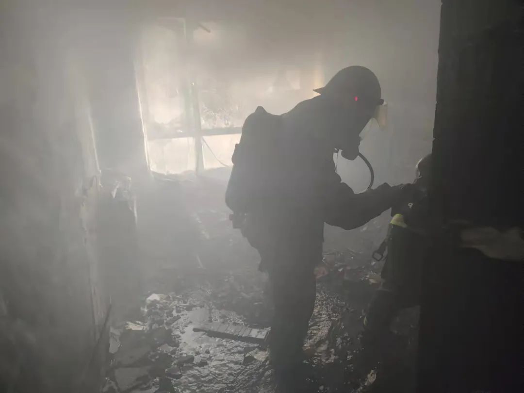 救出孩子后,曹旭再次拿著滅火器沖進房間控制火勢蔓延。消防員趕到后利用高壓水槍將火撲滅。