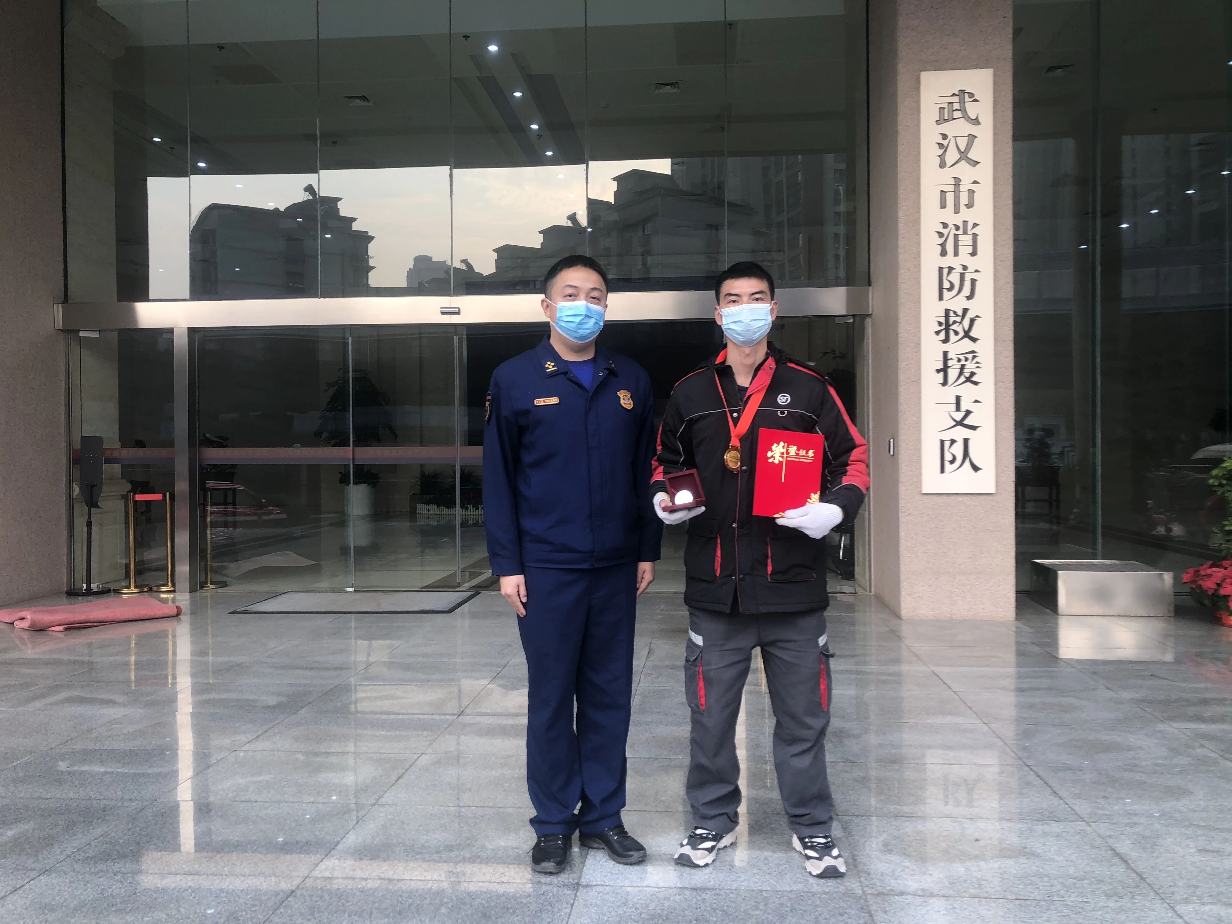 12月10日下午,武漢市消防救援支隊授予張?!拔錆h市優(yōu)秀消防志愿者”,同時為他頒發(fā)“消防勇士”紀(jì)念獎牌。感謝這位快遞小哥仗義出手,守護(hù)平安家園,你就是最帥氣的消防勇士!