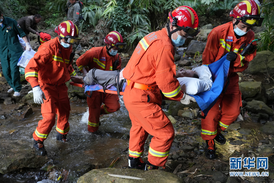 圖為消防救援人員轉(zhuǎn)運(yùn)傷者(2月7日攝)。新華網(wǎng)發(fā)(張子棟 攝)