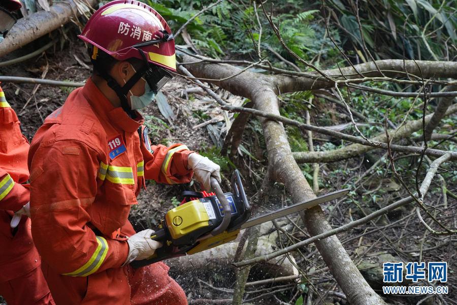 圖為消防救援人員開(kāi)辟救援通道(2月7日攝)。新華網(wǎng)發(fā)(張子棟 攝)