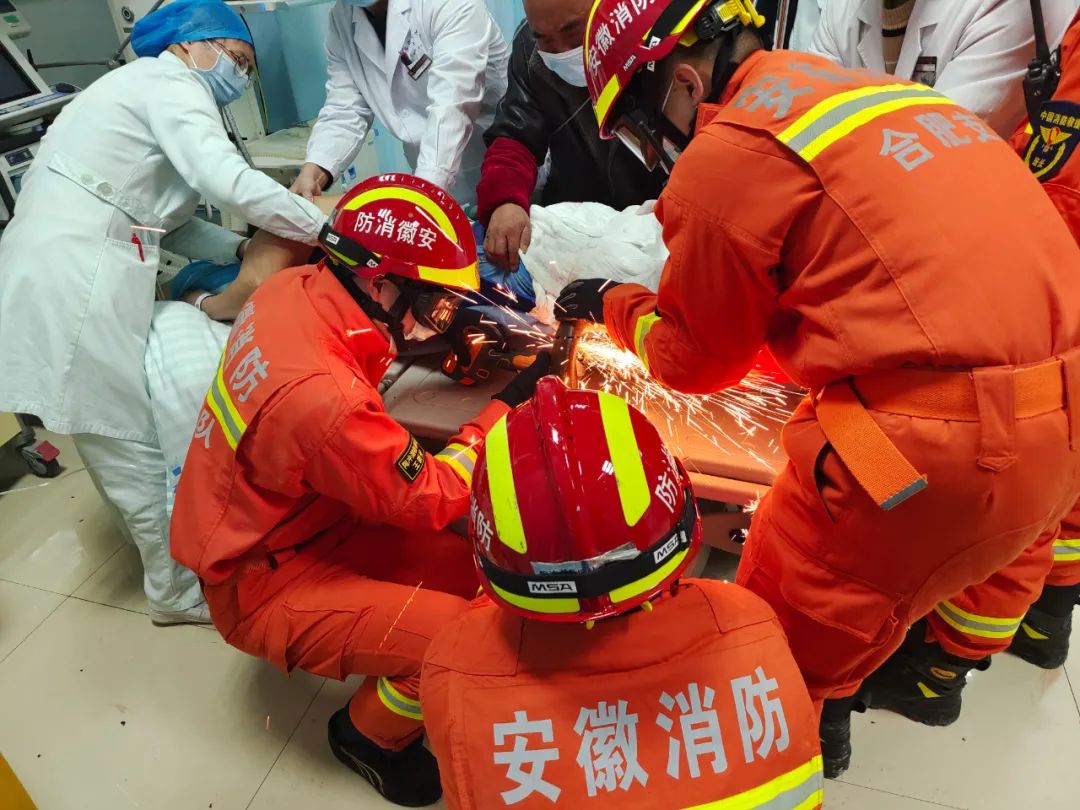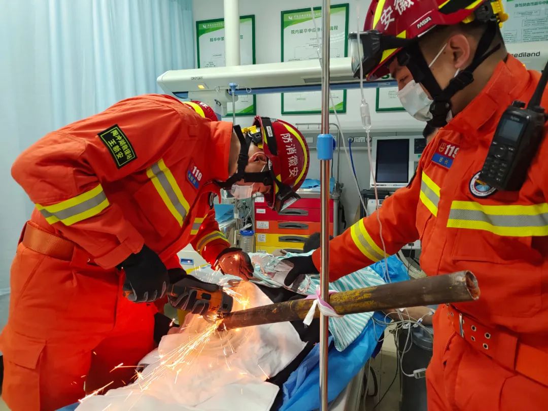 2月17日上午7時(shí)許,安徽合肥一男子不慎從高處墜落,腿部被鋼管穿透。