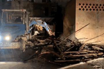 在挖掘機(jī)的協(xié)助下,消防員利用水槍、撓鉤配合處置,最終火勢被完全撲滅。