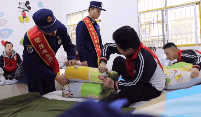 在學(xué)校,向師生們普及發(fā)生火災(zāi)時(shí)如何利用災(zāi)情瞬間進(jìn)行自救的措施。