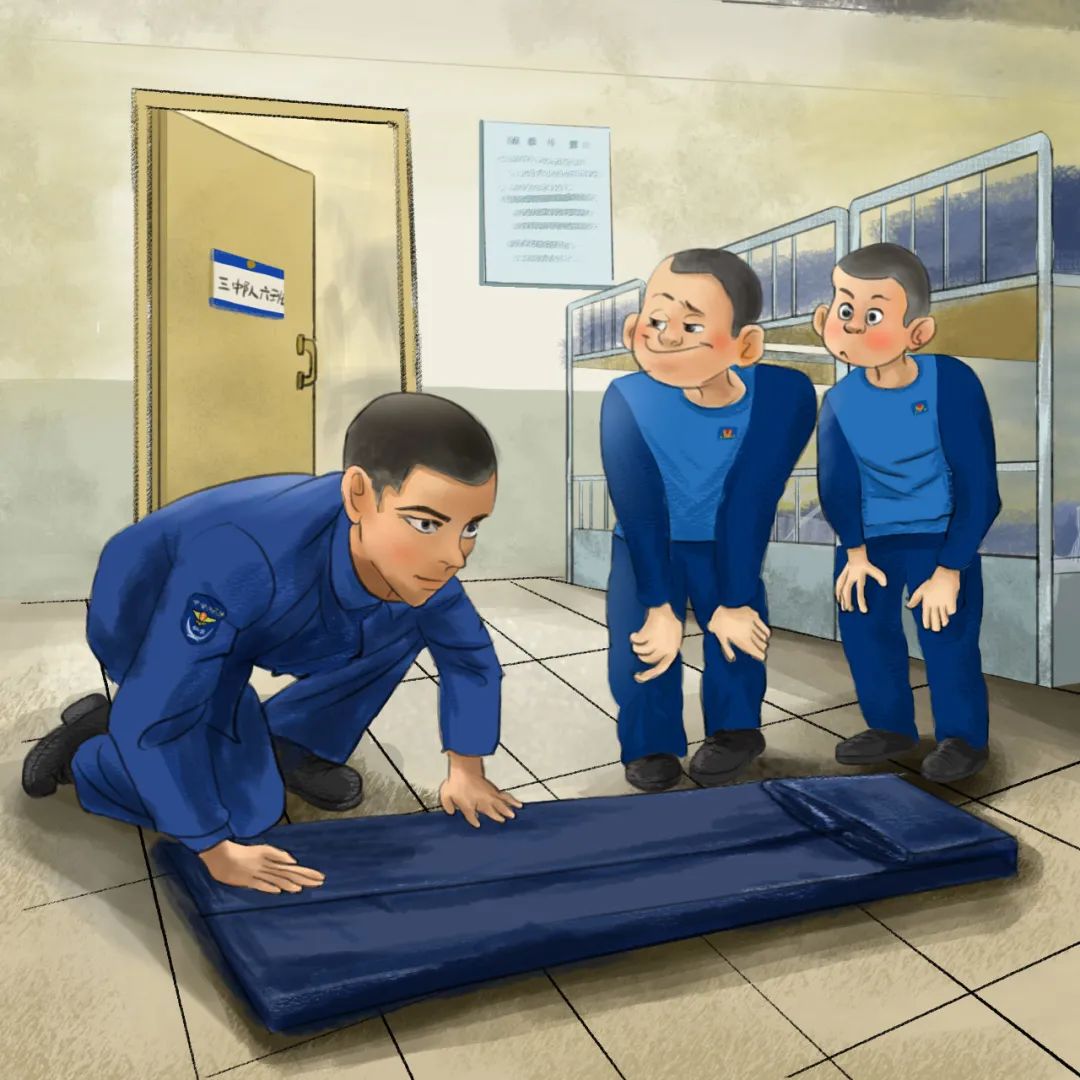 “出門看隊列,進門看內(nèi)務”疊被子、整理床鋪、生活用具擺放…… 班長一來就說,這是我們的必修課,“豆腐塊”里面好像蘊藏著什么大道理呢。