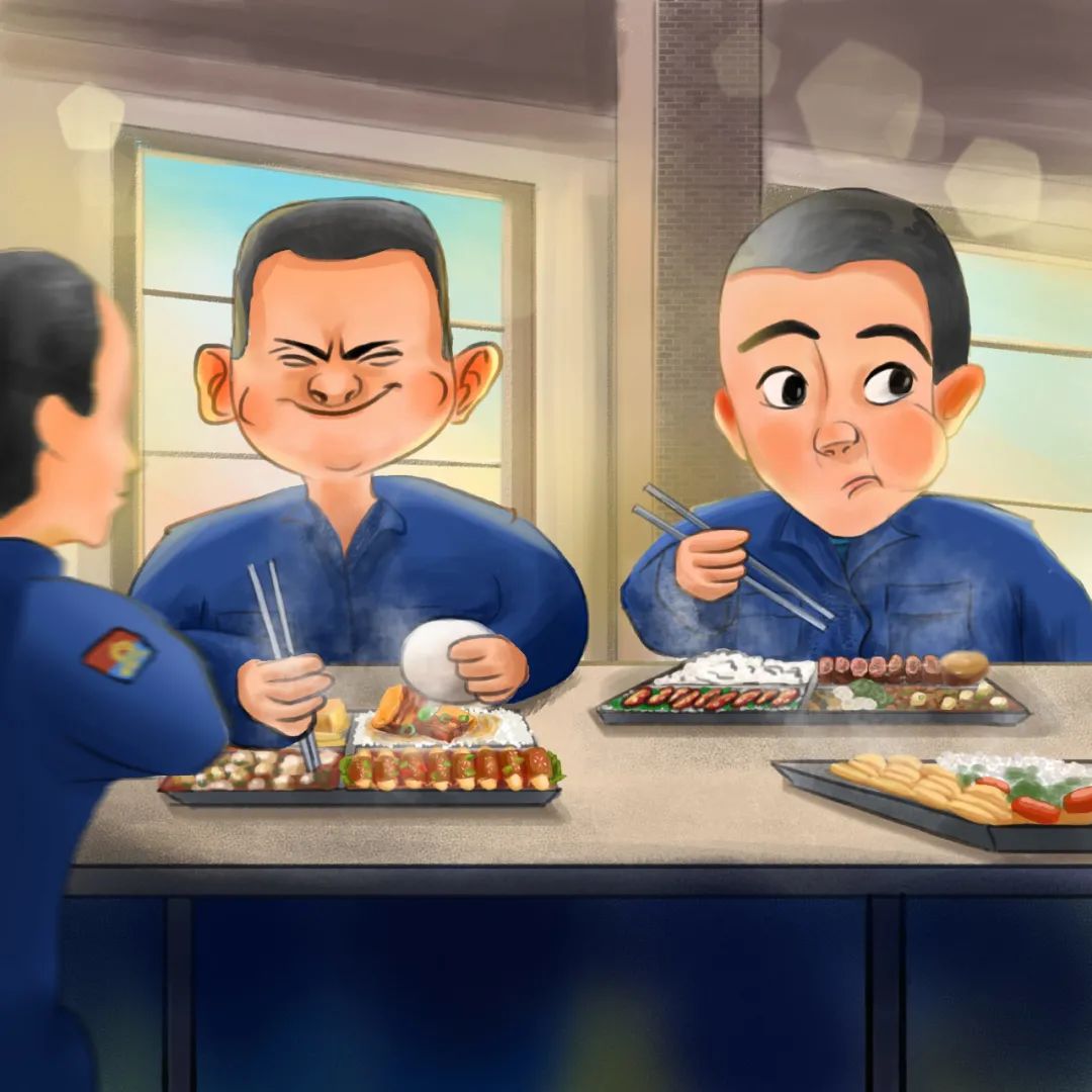 “啊,我聞到了,今天是辣子雞!”訓練完畢,好好補充能量!