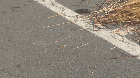 模擬場景:未熄滅的煙頭被隨意丟在一堆稻草旁邊。