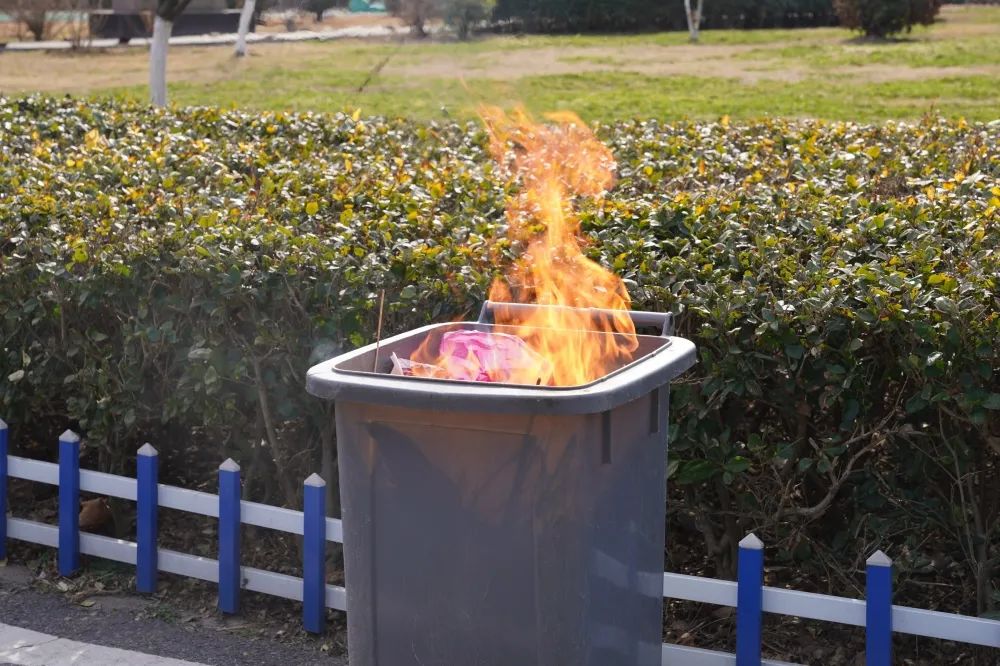 模擬場景:未熄滅的煙頭被投入裝有紙巾、塑料片等可燃物的垃圾桶內(nèi)。