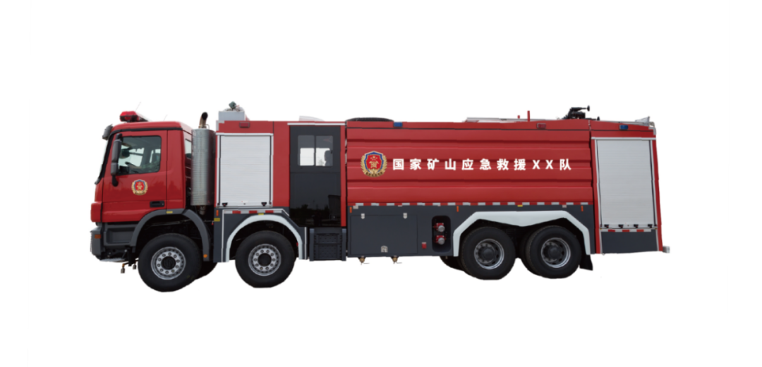 裝備車輛車頭側(cè)面圖案為主標(biāo)志,車身側(cè)面圖案為主標(biāo)志及隊(duì)伍名稱,如“國(guó)家礦山應(yīng)急救援XX隊(duì)”,裝備車輛噴涂樣式如圖5所示。