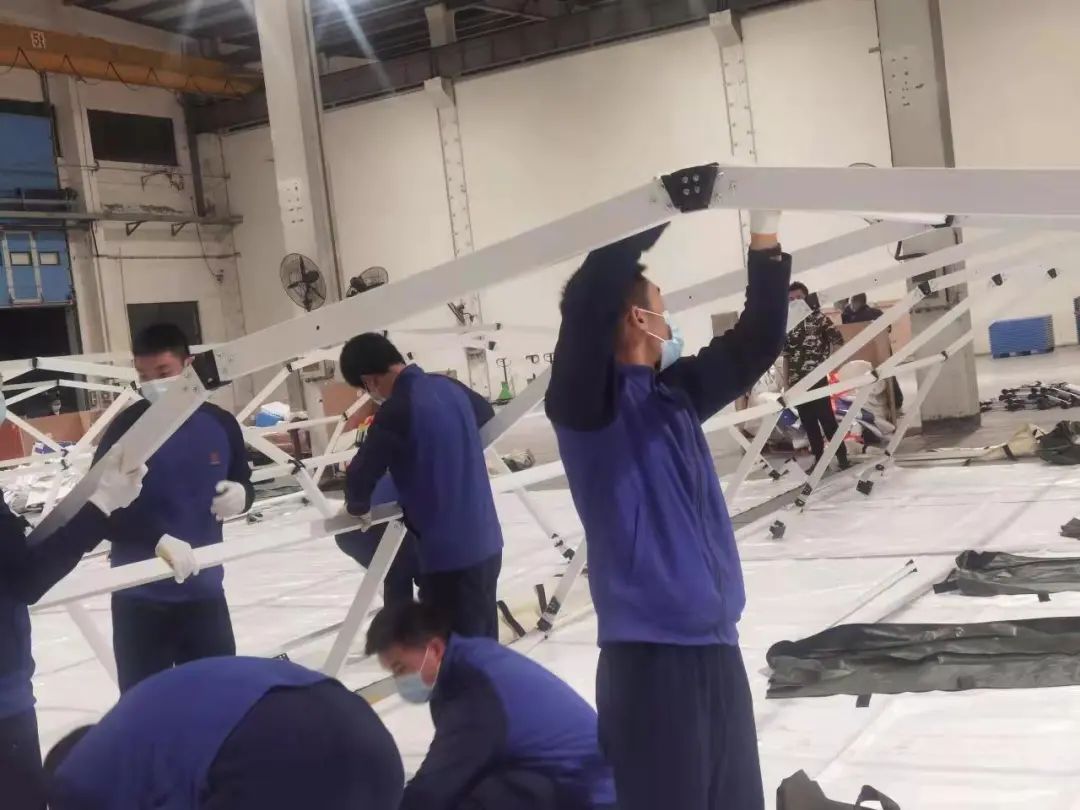 累計安裝了4組新風空調(diào)、16個生物安全柜、6個氣膜移動實驗室艙、15扇機械傳遞窗、12個帳篷、28個電箱、30個平板桌、35個物品柜、36個儲物架、120根燈管等設施,對方艙集結區(qū)恒溫系統(tǒng)、照明設施、電器線路進行了敷設。