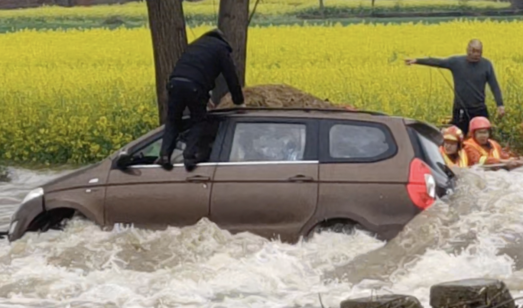據(jù)了解,因暴雨,這名司機(jī)送學(xué)生上學(xué)的必經(jīng)之路被河水淹沒。為了趕時(shí)間,竟心存僥幸開車渡橋。結(jié)果車輛被沖到下游,幸虧車輪被一老樹根纏繞,不然后果不堪設(shè)想!