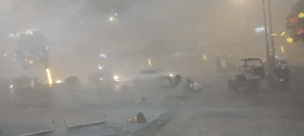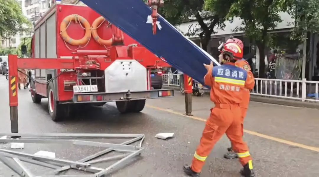 12日白天,消防救援人員,對極端天氣過后,受損的城市設(shè)施進(jìn)行清理,消除安全隱患。