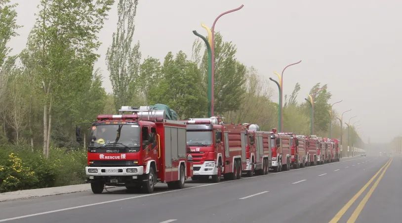 共調(diào)派包括通信指揮車、大功率泡沫消防車、水罐消防車、高噴消防車、遠(yuǎn)程供水消防車、搶險(xiǎn)救援消防車、宿營(yíng)車、餐飲車等各類型消防車輛411輛。