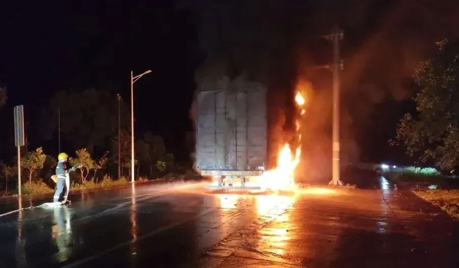 據(jù)了解,貨車車廂內(nèi)裝滿了大量百貨、雜物以及五金設備等貨品50余噸。司機在行駛途中從后視鏡中看到貨車輪胎冒出大量濃煙,隨即下車查看,發(fā)現(xiàn)輪胎已有火光冒出,車輪輪轂已被大火燒紅,司機見狀迅速報警求助。