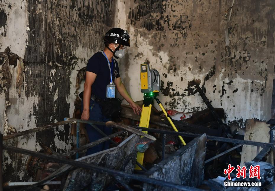 火災調(diào)查員使用3D掃描儀,三維建模還原現(xiàn)場原貌。 劉新 攝