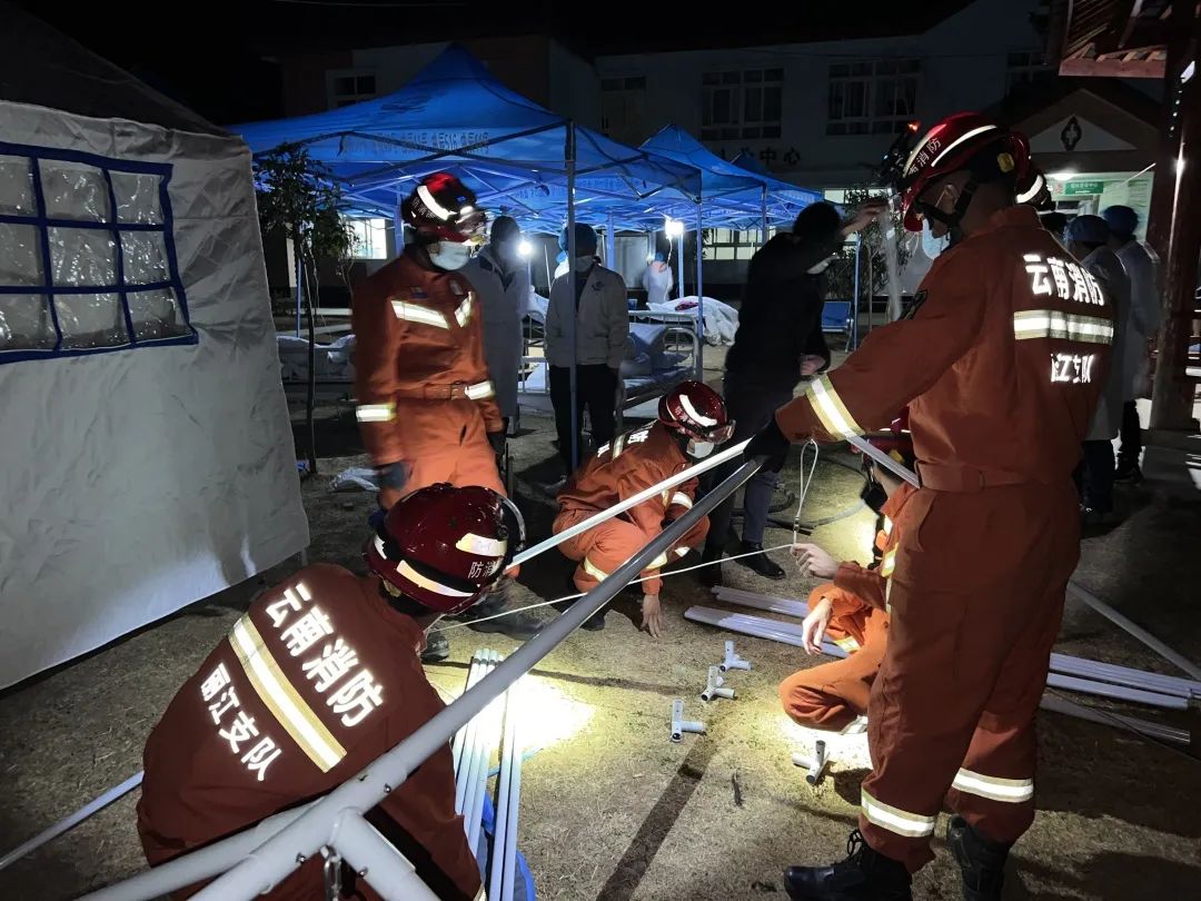在永寧鎮(zhèn)受災現(xiàn)場設置的7個臨時安置點中,消防救援人員協(xié)助搭建安置帳篷56頂,現(xiàn)場準備滅火器60具,發(fā)放消防安全宣傳手冊500余份,派出消防監(jiān)督人員開展防火巡查和消防安全提醒。