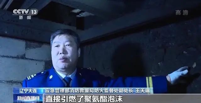 王天瑞:按當(dāng)事人的供述,高溫的焊搭直接引燃了聚氨酯泡沫。當(dāng)時他用嘴吹了一下,把這邊周邊(的火)吹滅了,結(jié)果(火勢)蔓延到上面沒有撲滅。經(jīng)過我們綜合分析認(rèn)定,是由于這個冷庫施工人員違章違法電焊引燃了墻上的聚氨酯泡沫所致。