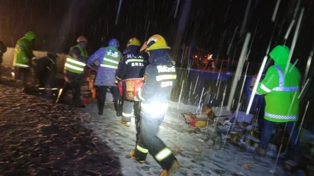 險!風雪夜?jié)M載17噸煙花大掛車側翻