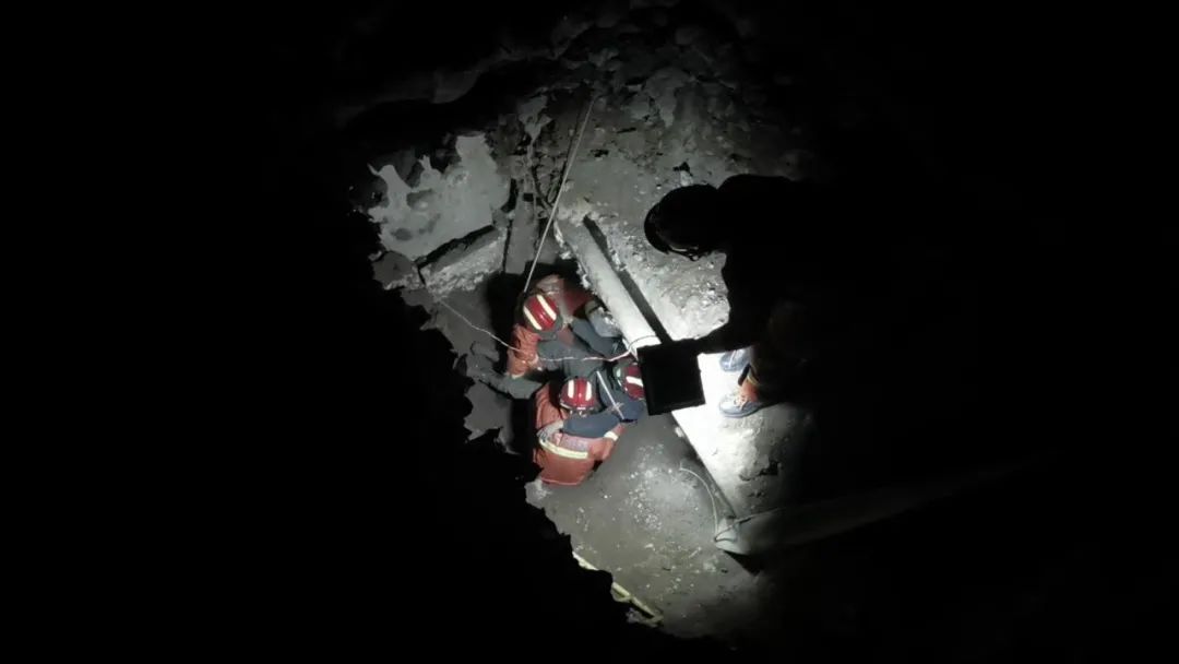 消防救援人員趕到現(xiàn)場發(fā)現(xiàn),被埋壓的維修工人施工作業(yè)口約2.5米見方,深度約2米。事故發(fā)生后,其工友已經(jīng)挖掘出部分坍塌的渣土,被埋工人的頭部和胸部已經(jīng)露出。詢問被埋人員得知,其雙腿成跪姿,腿部周圍有碎石,長時間一個姿勢讓其疼痛難忍。